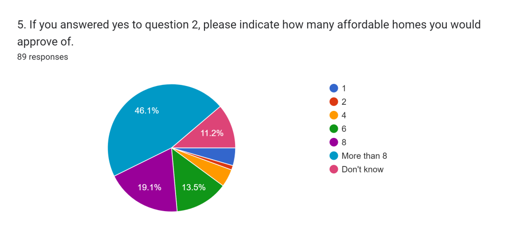 5. If you answered yes to question 2, please indicate how many affordable homes you would approve of.