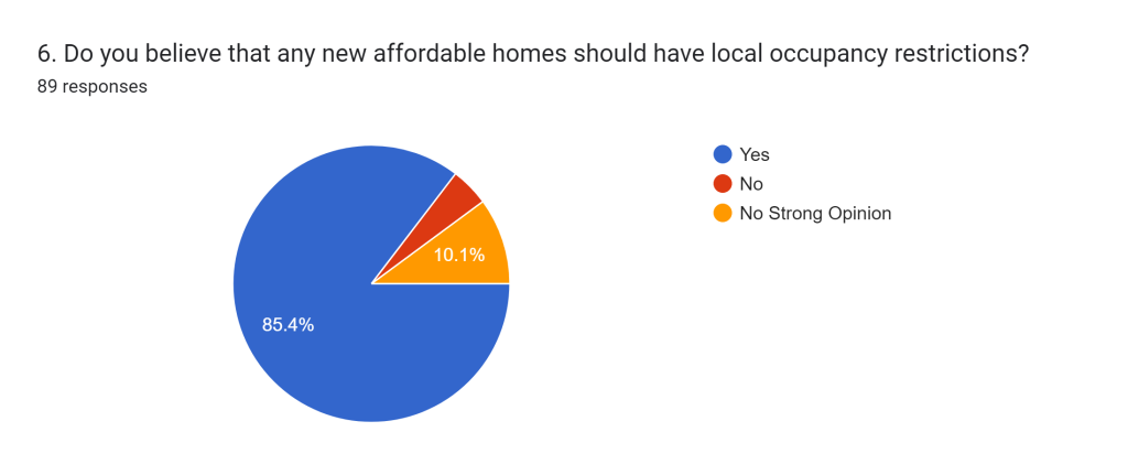 An overwhelming 85% of respondents agreed that new affordable homes should have some sort of local occupancy restrictions.
