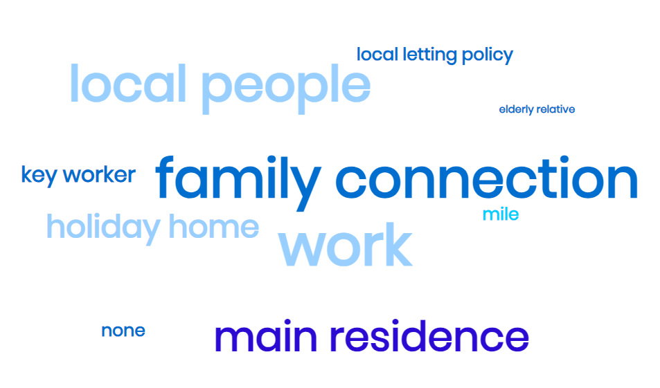 Some of the themes highlighted in responses here were that homes should be the main residence, with no holiday homes allowed and that there should be a local connection, whether through work, especially key workers, or family